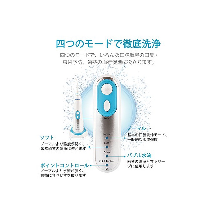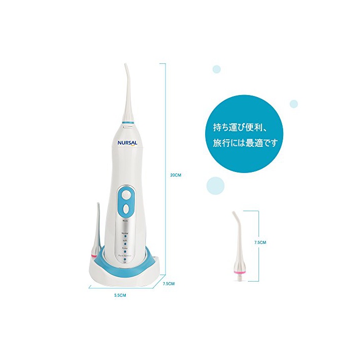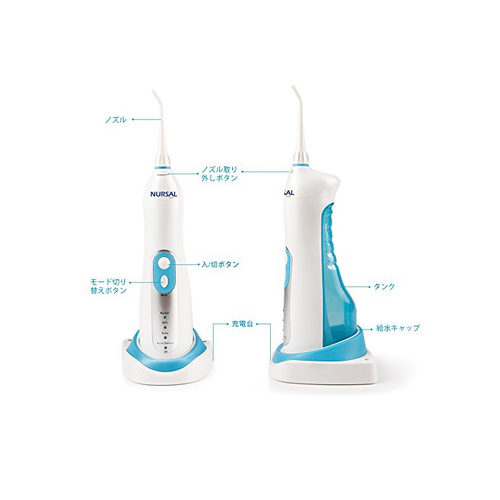원본상품명: NURSAL 口腔洗器 無接点充電 ウォタピック 間ジェット洗 4つの水モド IPX7防水 口臭防止 周病予防 自動電源オフ ノズル2本付き 【24月保】