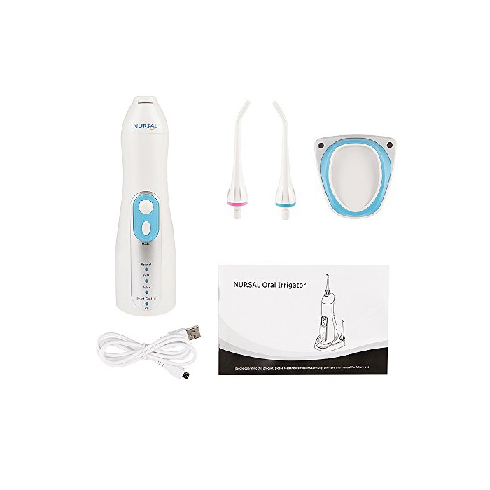NURSAL 구강 세정기 무접점 충전 워터 픽 치간제트 세정 4개의 수압 모드 IPX7방수 구취 방지치 주병예방 자동 전원 오프 노즐2개 부착 【24월 보증】
