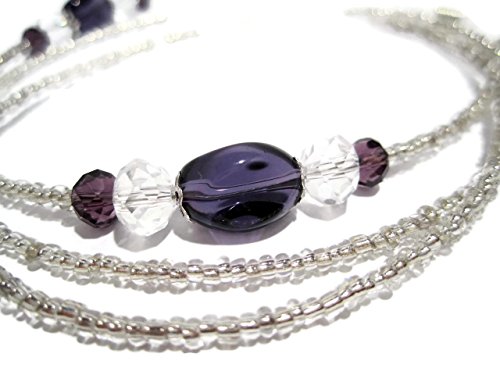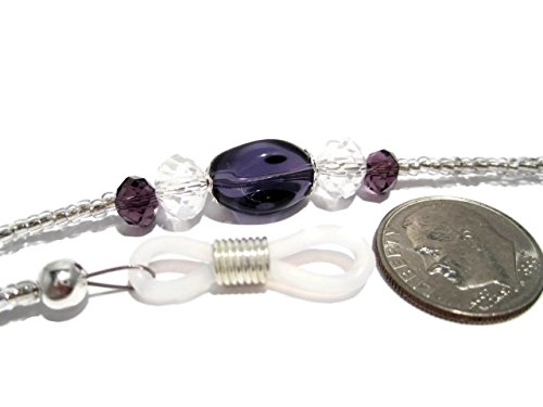 Studio : ATLanyards Publisher : ATLanyards Binding : Health and Beauty Product Description This beaded eyeglass holder features purple and clear decorative beads and 2mm silver glass seed beads. The eyeglass holder is strung on durable multi-strand coated beading wire. The beaded strand measures approximately 27". The total length including the adjustable eyeglass pieces measures approximately 29.5". (Please note the dime in the last picture is for size comparison purposes only and is not included in the purchase of this listing.) 0