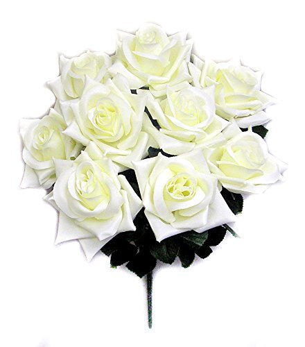 Admired By Nature 9 Stems Artificial Full Blossoms Rose Bush for Home, Wedding, Restaurant & Office Decoration Arrangement, Cream, 2 Pieces