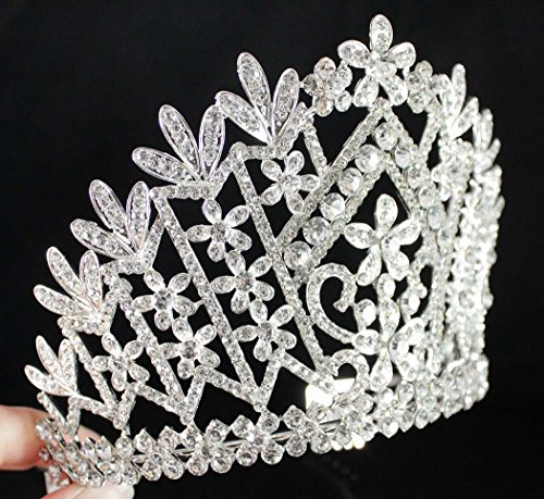 This is gorgeous daisy Austrian rhinestone tiara with hair combs. Glittery Clear Austrian rhinestones are set on Silver-plated metal. All the rhinestones shine a lot! Sides hair combs for extra security. This tiara is perfect for wedding, party, prom, pageant or any special occasions! Thanks for looking!Feature