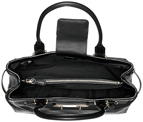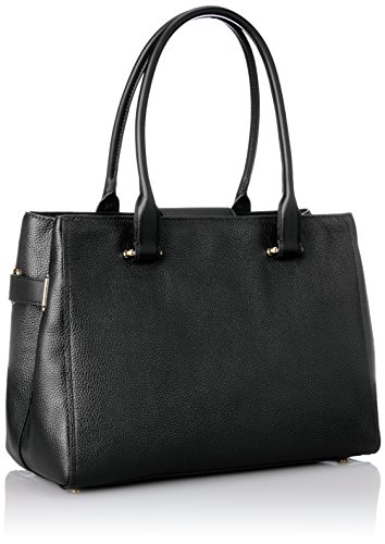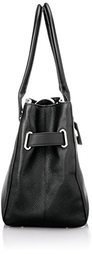 -. Feature : Pebbled Leather. Double-turnlock hardware. / Magnetic closure. Center zip compartment. Fabric lining. Interior zip, cell, and slip pockets. / Detachable strap for shoulder or crossbody wear. Metal feet on bottom. / Color: Black / Gold Hardware / H: 7.75 in x W: 5.75 in x L: 10.75 in 4