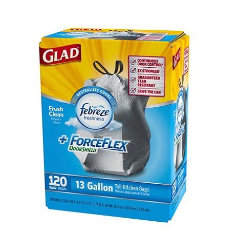 -. Title : Glad 13 gal. ForceFlex Febreze OdorShield Tall Kitchen Drawstring Trash Bags (120 ct.) by Glad