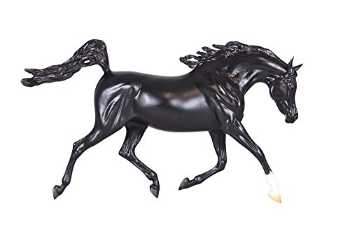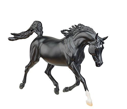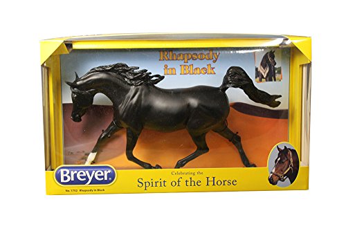 A True black Egyptian Arabian, Rhapsody In Black is a prolific broodmare known for passing on color and flawless conformation. Twice named Egyptian Event Leading Dam of Winners, she produced a Champion in the Egyptian Breeders Challenge three years in a row. She is the dam of Bellagio RCA, a sire of multiple national champions. Her sire, Thee Desperado, was also a Breyer portrait model! Model measures 12"L x 6.75"H.Feature