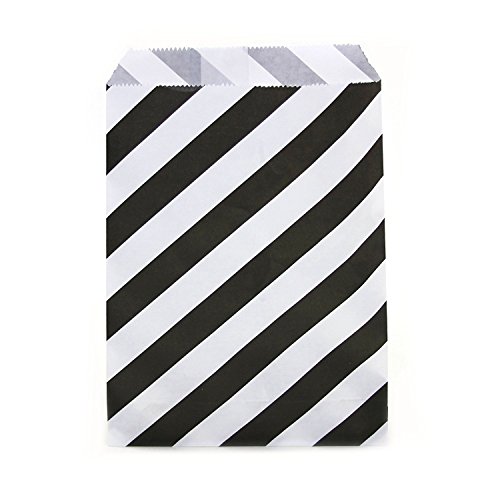 AKOAK 50 Pcs 5 x 7 Inches White and Black Striped Paper Bags,Holiday Wedding Christmas Favor Candy Treat Bags