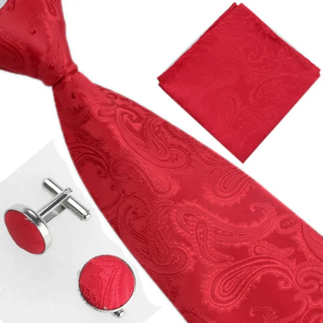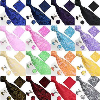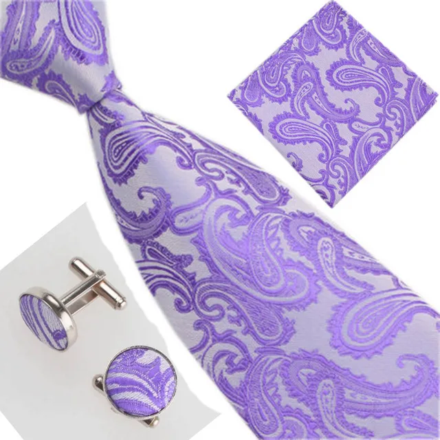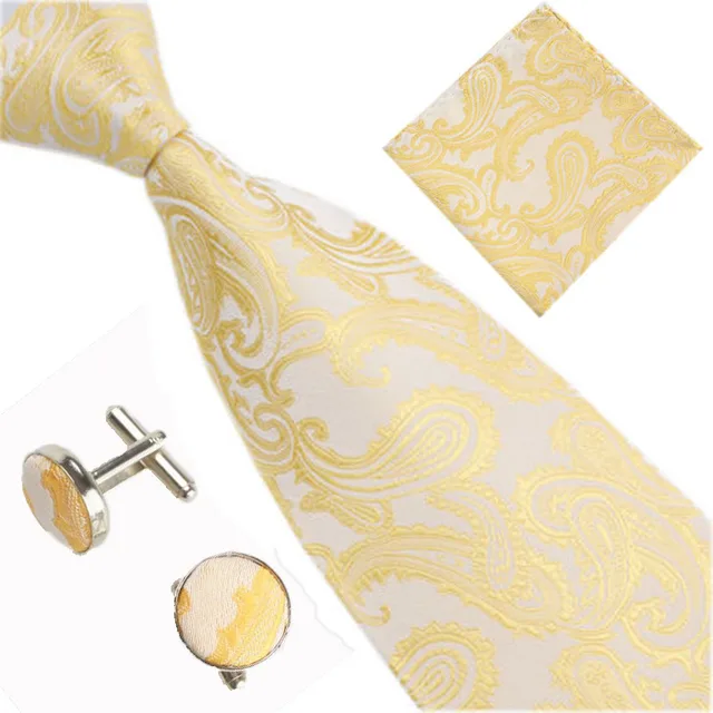 | [해외]남성 넥타이 노란색 페이즐리 실크 자카드 넥타이 손수건 커프스 세트 남성 비즈니스 선물 넥타이 드롭 배송 |