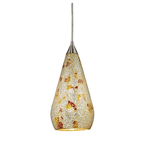 Product Description The ELK 546-1SLVM-CRC-LA Curvalo collection Pendant Lighting in Satin Nickel uses Incandescent light output and brings Contemporary style. The total wattage is 60 and the voltage is 120 volts. The ELK Lighting 546-1SLVM-CRC-LA requires 1 bulb (not included). Additional Information: Shade-Silver Multi Crackle Hand-Blown Glass. 0