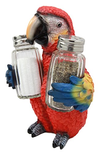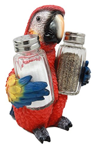 Atlantic Collectibles Tropical Rainforest Rio Scarlet Macaw Parrot Decorative Salt Pepper Shakers Holder Figurine 6.75"H