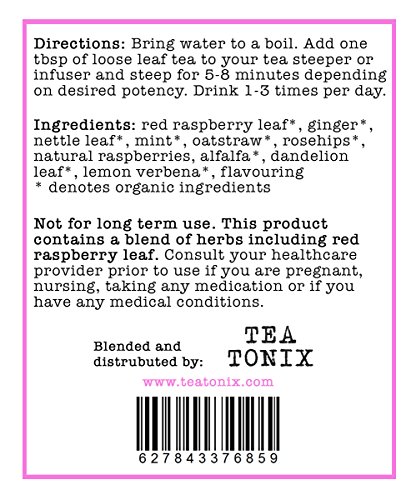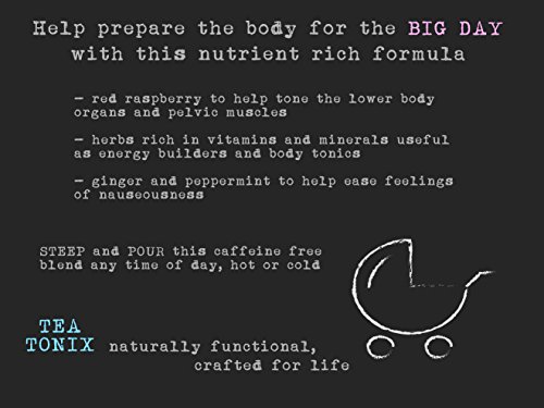 -. Feature : Herbs to help PREPARE the body and provide ESSENTIAL NUTRIENTS during pregnancy / GINGER and MINT to help ease feelings of nauseousness with hints of raspberry / We thoughtfully source FRESH, ORGANIC ingredients to give you a BETTER, ALL NATURAL tasting tea / TEA TONIX specializes in FUNCTIONAL WELLNESS blends crafted by us, for life / STEEP and POUR to better health NATURALLY