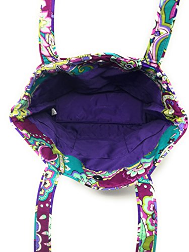 Vera's durable and spacious Tote is made of soft quilted fabric with a removable sturdy fabric covered bottom insert. The open top features a magnetic closure and the interior features 3 open slip pockets. This series has been updated with coordinating solid fabric interiors. The dual straps have a very comfortable drop of about 10.5 inches. Vera's Tote is versatile and makes for a great, every day tote - whether for school, work, the beach, or the gym. It makes a great carry-on bag for travel, or even a beach bag! It is lightweight, and easily maintained. Just remove the sturdy fabric covered insert and it can be placed in the wash. It measures 13 inches long x 13 inches high x 4 inches wide. Machine wash cold, gentle cycle, only non-chlorine bleach as needed, line dry.Feature