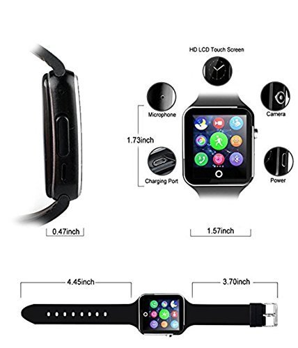 -. Title : Bluetooth Smart Watch Touchscreen with Camera,Unlocked Watch Cell Phone with Sim Card Slot,Smart Wrist Watch,Waterproof Smartwatch Phone for Android Samsung IOS Iphone 7 Plus 6S (Black)