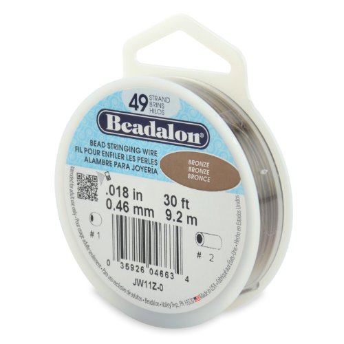 Beadalon 49-Strand Bead Stringing Wire, 0.018-Inch, Bronze, 30-Feet
