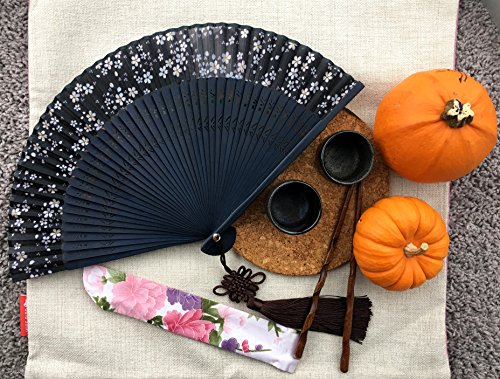 Quality: Beautiful hand-crafted Chinese Japanese hand held folding fan with first-class bamboo spins and high quality traditonal silk fabrics.