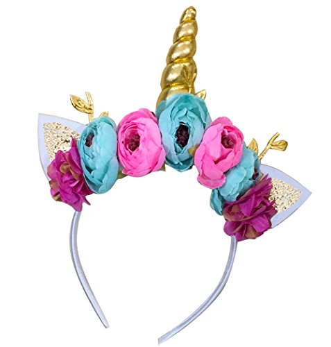 Product Description ADORABLE DESIGN : Shiny unicorn horn, cute ears, nice cloth flowers . These elements makes the headband more popular. PEFECT SIZE: the unicorn height is about 5" , headband width is about 6" . It's fit for most teens. COMFORTABLE MATERAIL: The headband made from soft cloth,which are comfortable the kids. FINE HAND CRAFTED : The headband are handmade.Tulle embellishment looks like a unicorn mane. Perfect for all unicorn lovers and is sure to bring a smile to her face. For everyday wear, pretend play, play dates, special occasions, photo props, and more! Great gift for Halloween, birthdays, or Easter. 0