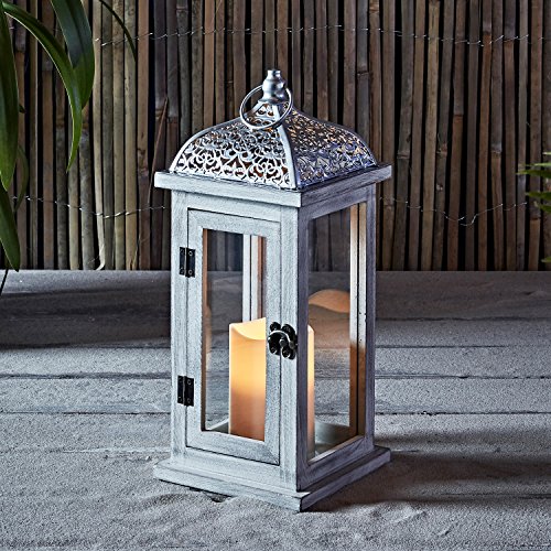 Rustic White Wooden Battery Operated Outdoor LED Flameless Candle Lantern