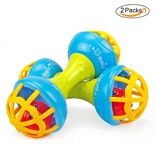2PCS includes,4-in 1 toy,Baby will being able to shaker, rattle ,teether and dunbbells all at once.