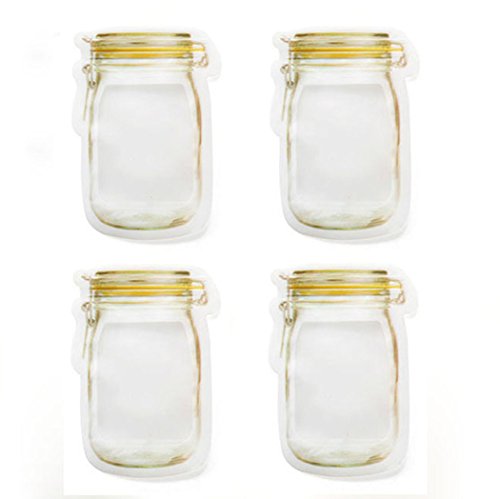 WandLee 4 Pieces Reclosable Mason Jar Shaped Vacuum Sealer Bags With Zipper, Reusable Airtight Seal Food Storage Container, Size S, Yellow