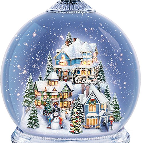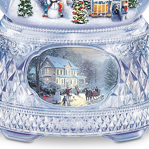 Studio : The Bradford Exchange Publisher : The Bradford Exchange Binding : Kitchen Product Description This snowglobe brings the Painter of Light's™ joyous visions to your home in a first-of-its-kind innovation exclusively from The Bradford Exchange. Introducing the Thomas Kinkade Home For The Holidays Snowglobe, the FIRST and ONLY holiday snowglobe with a genuine faceted crystal base. Imagine how much merriment this limited-edition masterwork will bring to all your holiday celebrations! An authentic Thomas Kinkade holiday village has been expertly recreated inside this real glass globe. A genuine Swarovski crystal adorns the star upon the gleaming tree that crowns the snowglobe, while inside every detail of the Victorian-design homes, merry villagers, snow-covered trees, even the children decorating their carrot-nosed snowman, is fully sculpted and intricately hand-painted. The sparkling genuine crystal base is topped with a layer of silvery paints that add to the crystal's reflective qualities. Peer into the handcrafted "window" in the center of the base to enjoy one of Thomas Kinkade's most beloved images, beautifully recreated. Plus, with the flip of a switch a flurry of sparkling "snow" swirls over the scene as built-in lights glow and a medley of eight holiday carols fills the air. - Peer into the handcrafted "window" in the center of the crystal base to enjoy one of Thomas Kinkade's most beloved images, beautifully recreated
