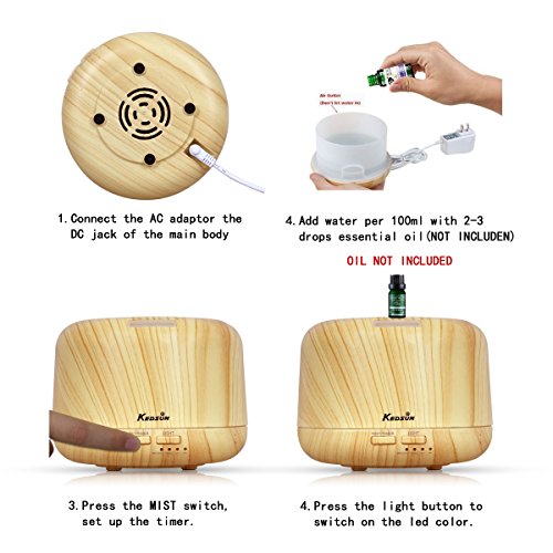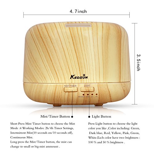 KEDSUM 300ML Aroma Essential Oil Diffuser Sonic Air Humidifier with 4 Timer Settings , 2 Mist Amount Mode , 7colors LED Changing Lights,6 Hours Continous Mist Mode - Auto Off for Home, Office, Spa