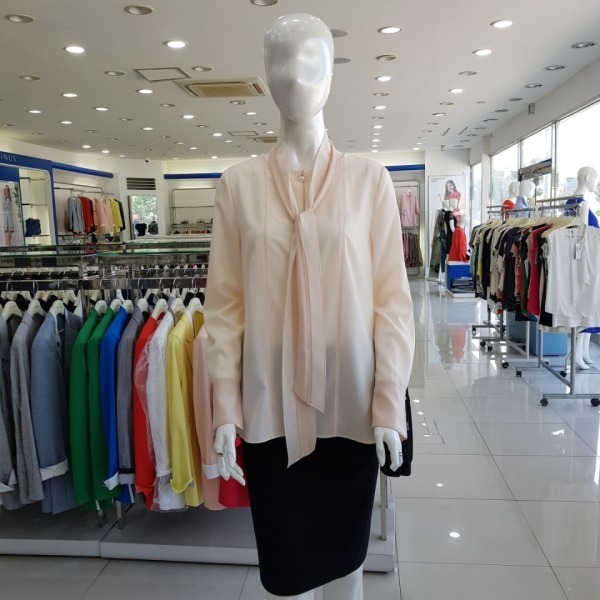 스카프 디테일의 배색 블라우스-JA7F9-WRB230-크림