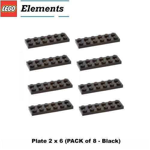 -. Title : L.E.G.O Parts: Plate 2 x 6 (PACK of 8 - Black)