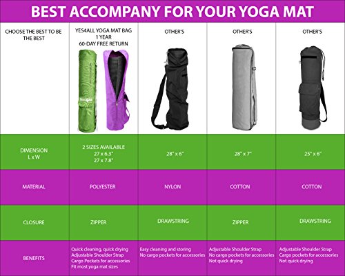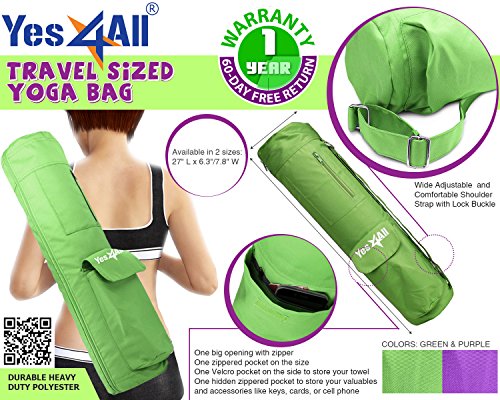 Studio : Yes4All Publisher : Yes4All Binding : Misc. Product Description New! HEAVY DUTY YOGA BAG for Stress-Escape Journey! POLYESTER MATERIAL FOR SUPERIOR DURABILITY Made of polyester fabric, Yes4All Yoga Bag is extremely sturdy and durable, which is resistant to most chemicals, wrinkle, mildew and abrasion. Polyester material can retain its shape quickly after being pressed so you can be worry-free when stuffing it inside your personal locker. Machine-washable and quick-drying material. ROOMY SPACE FOR YOUR THICK MAT 2 sizes available: 27 inch long x 6.3 inch wide (69 x 16 cm) 27 inch long x 7.8 inch wide (69 x 20 cm) FUNCTIONAL DESIGN The yoga bag features a big opening with zipper to slide your Yoga bag easily and smoothly inside. There are a Zippered Pocket and a Velcro pocket on the side of the bag to store other essentials like water bottles, towels or clothes. Hidden zippered pocket inside Velcro pocket is designed to store your key chains, phones and other small valuables. The carry strap is cleverly designed with electric-plated anti-rust steel buckle for easy adjustment due to your height. (Min Length: 23 inch/ Max Length: 36 inch) Note: Yoga Mat is not included in this listing. Warning: Yes4All is a registered trademark. If you're listing a non-Yes4All item for sales against the page, you are violating 1. Amazon listing policy 2. Fair competition laws 3. Yes4All trademarks for misleading the use of its logo and name 0