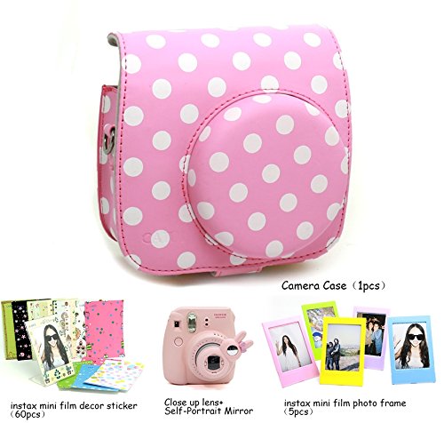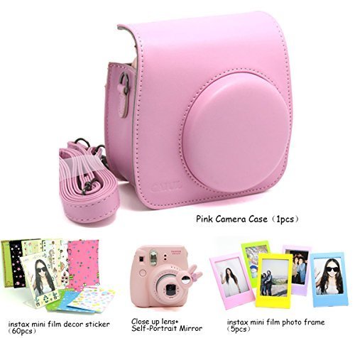 Package includes: Fujifilm instax mini 8 case bag/ mini 8 Close-Up Lens/ 3 inch photo frame(5 pcs)/ colorful decor sticker borders(60pcs)