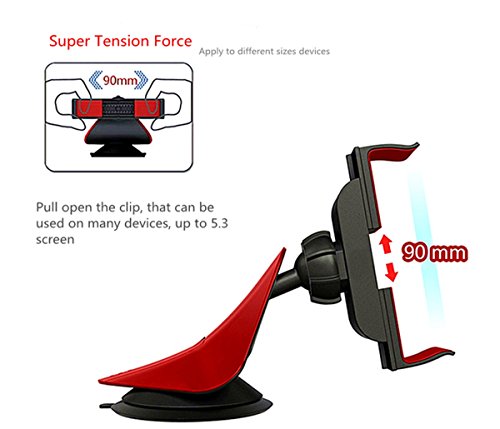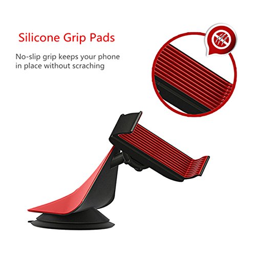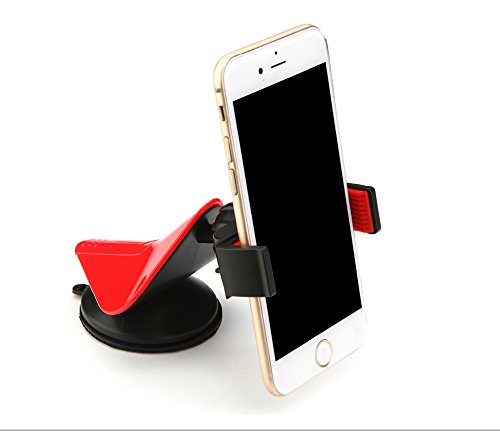 Rihan® Universal Cell Phone Vehicle Car Windshield Mount Holder Cradle Stand for Smartphones Up to 9cm Wide [Supports iPhone ,Samsung Galaxy and Most of the Smartphones Which is Under 6.5 Inches](red)