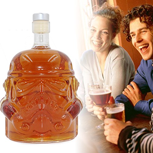 -. Feature : Made of superior high borosilicate glass, ultra eco-friendly and safe to use. / With unique Stormtrooper head design, extremely cool for those who love Star Wars. / Equipped with large capacity, can hold liquor for approx 650 ml. / Easy to use with soft bottle plug, will not change the taste of your liquor. / Fits for bourbon, whiskey, scotch, vodka, rum ,beer, juice and wine, also, can be a nice decoration in your cabinet.