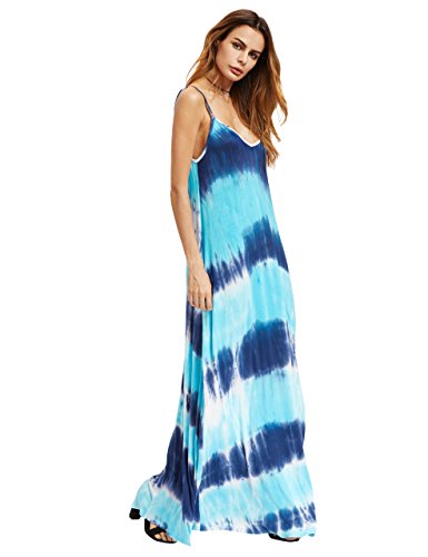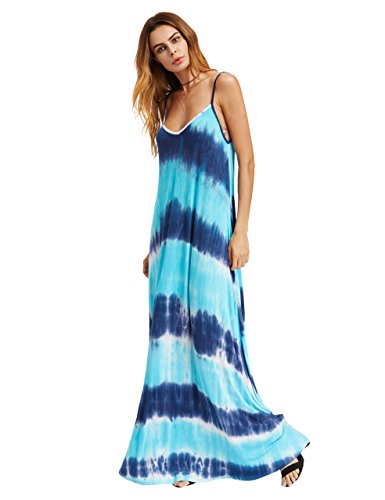 Very very loose, tie dye maxi dresses for women(height: 5'9"), or you need wear high hee. Our model:5'9", wear 4.8inch high heel.