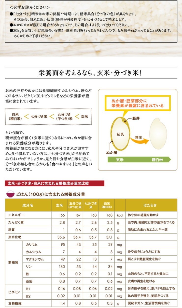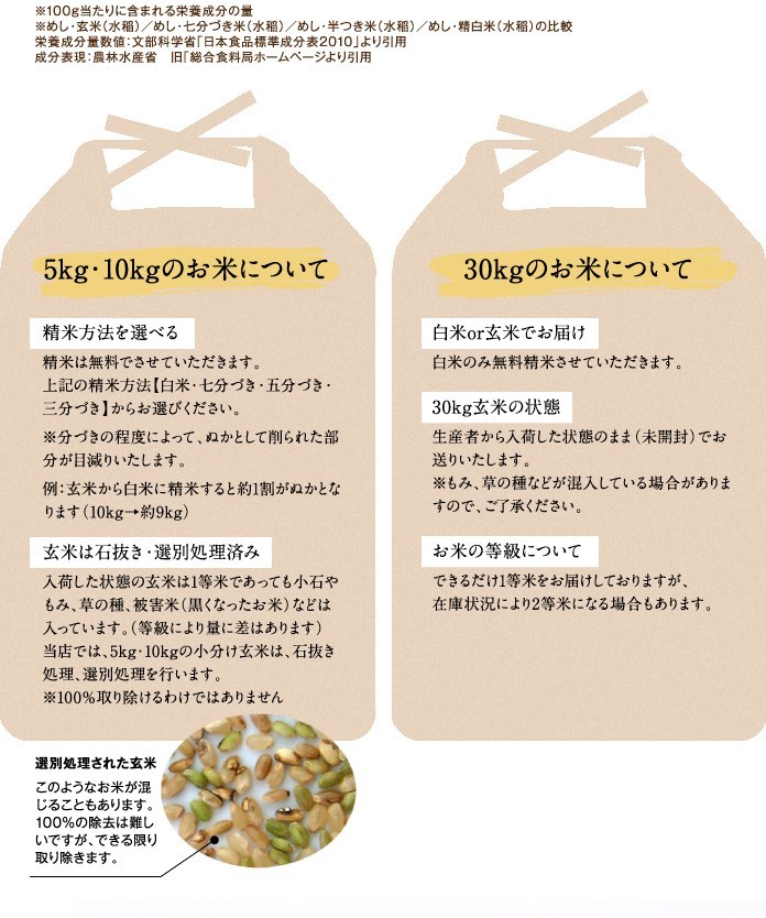 精米方法により目減りいたします。精白米の場合は、約1割がヌカとなります