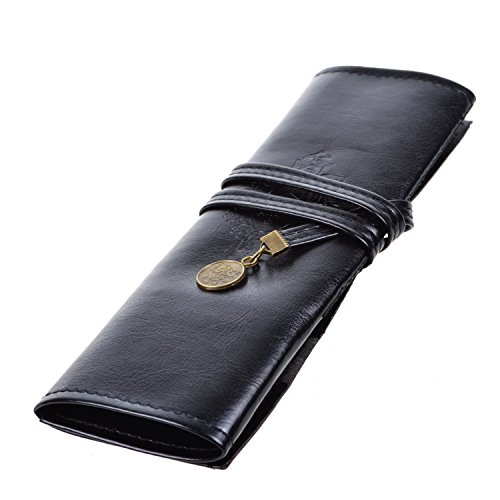 Cosmos ® Pack of 2 pcs Vintage Style PU Leather Rollup Pencil Case, Pencil Bag, Pen Pocket