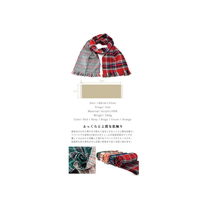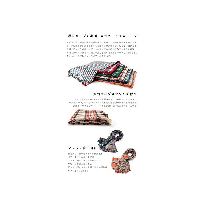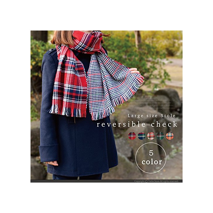 원본상품명: (トレリア) Trelia リバシブル ストル レディス 大判 厚手 大きい チェック 千鳥格子 フリンジ 秋冬 180x55cm