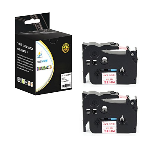 Catch Supplies 2 Pack Replacement TZe232 Red on White 1/2 Inch (12mm) Laminated Label Tape - Length 26.2ft (8m) - For use with the Brother P-Touch Label Printers