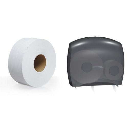 Kimberly-Clark IN-SIGHT JRT Escort unior Jumbo Roll Bath Tissue Dispenser with Stub Roll With 12-Pack Scott 2-Ply JRT Jr. Jumbo Roll Toilet Paper Refill Bundle