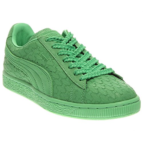 Soft, comfortable suede uppers. Allover textured pattern in bold colors. Foam-padded collar and tongue offers a great fit. Braided laces for eye-catching lace-up closure. Textile lining and a cushioned sockliner for comfort and added cushioning. Ribbed toe bumper with signature PUMA 360° stitching detail. Rubber midsole provide ample cushioning and a great ride. Rubber outsole for grip. Imported.