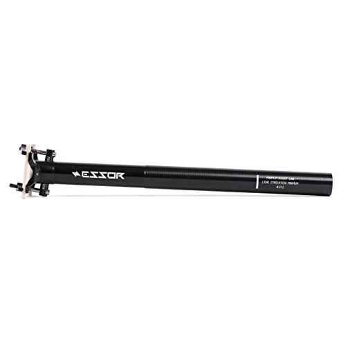 Essor USA Flight-Weight Aluminum Seatpost. Among the lightest posts on the market, available in Black and Titan Color, 27.2mm or 31.6mm, and 0mm or 25mm Off-Set.145g : 0mm Offset 27.2 mm x 400 mm 157g : 0mm Offset 31.6 mm x 400 mm 184g : 25mm Offset 27.2 mm x 400 mm 189g : 25mm Offset 31.6 mm x 400 mm CNC-machined 2014 T6 Aluminum tube and precision-machined premium titanium bolts. Maxmium Insertion on the Essor is 140mm (measured from saddle rails to seatpost clamp).Feature