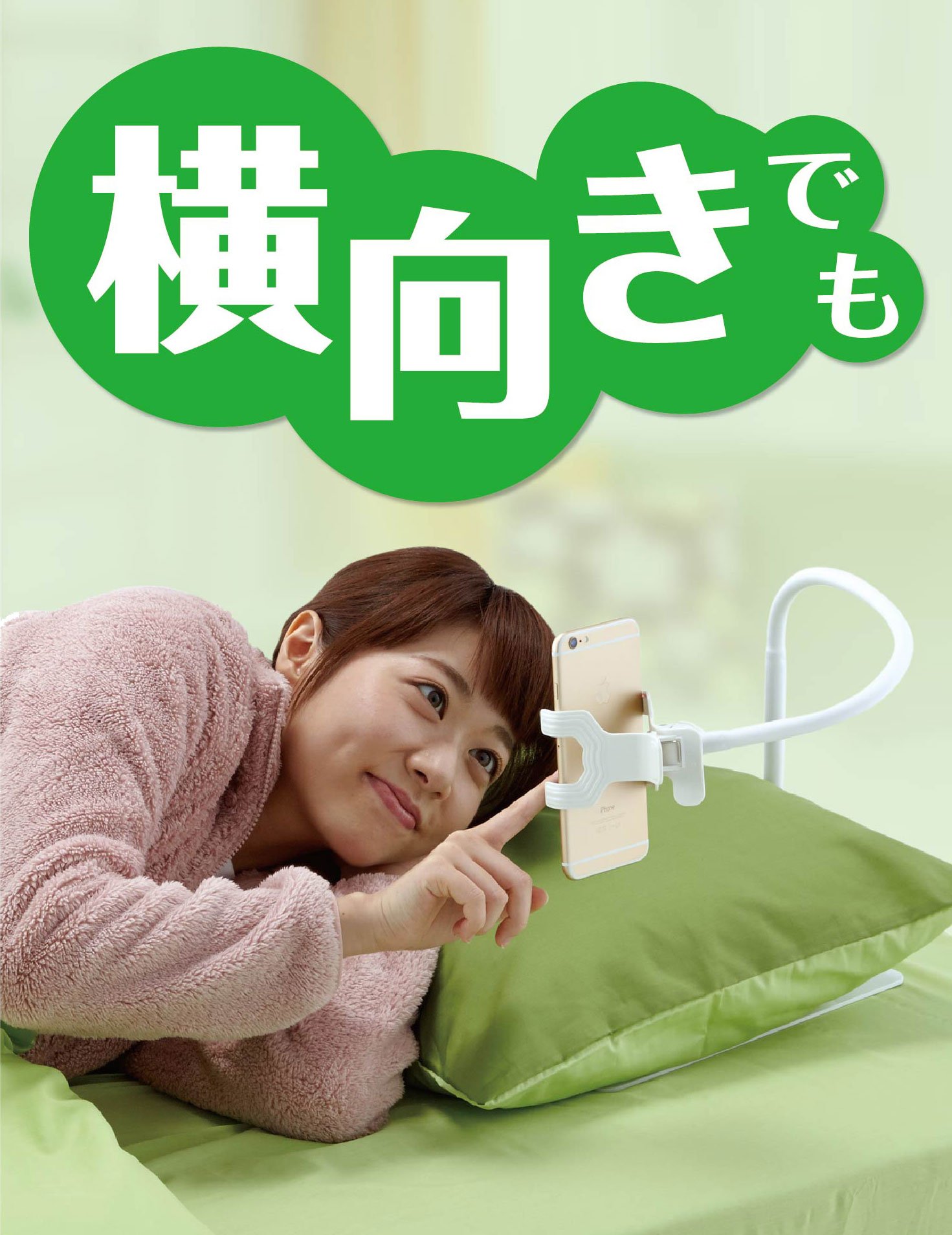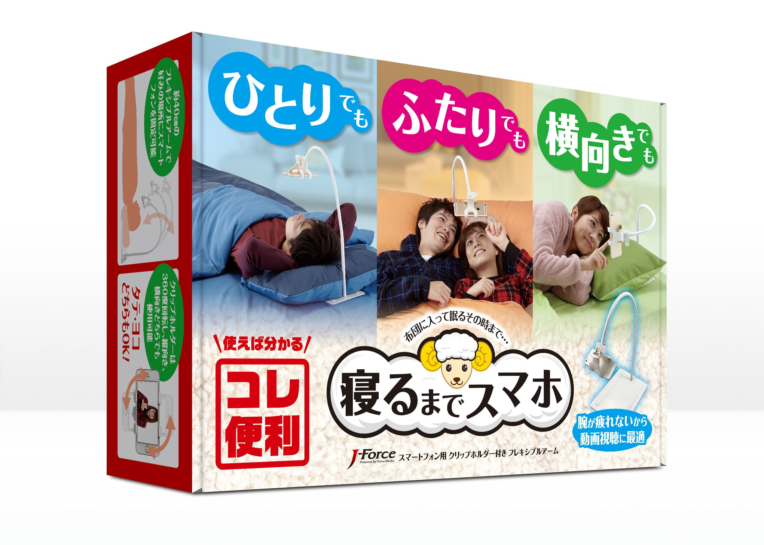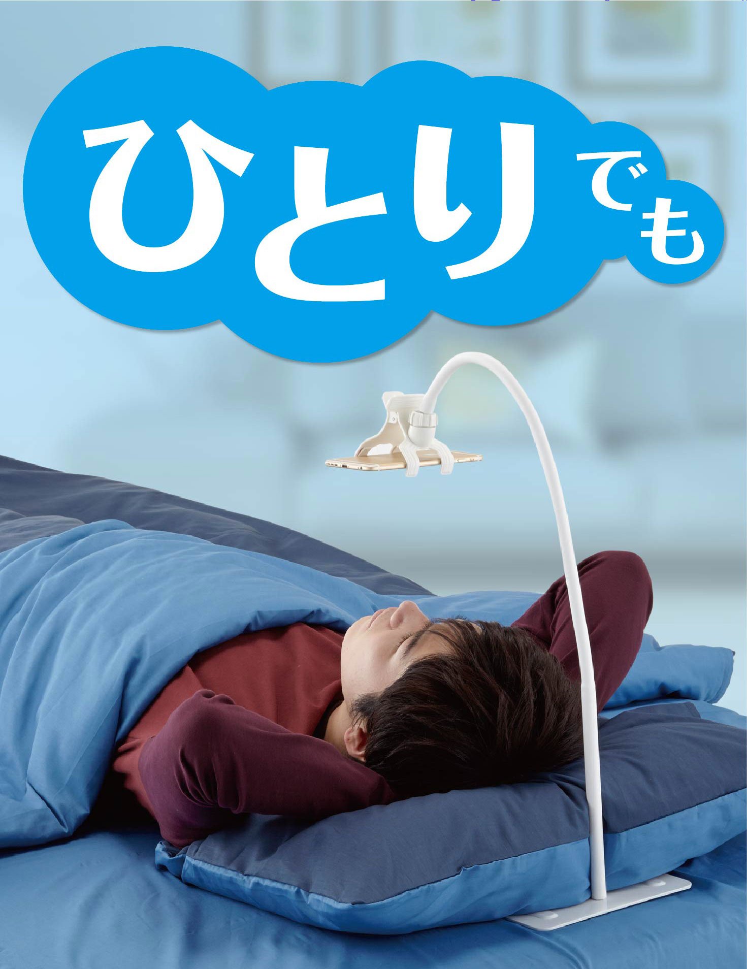 "Sleep until sleeping" is a product with a clip-type holder that holds the smartphone firmly and a pedestal with a long arm are united, and can be fixed to the best position to look at the smartphone with the bed facing up and lying sideways.