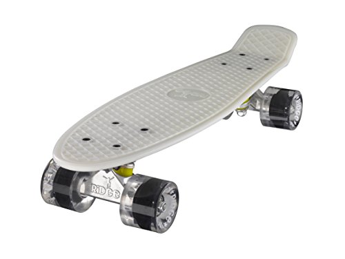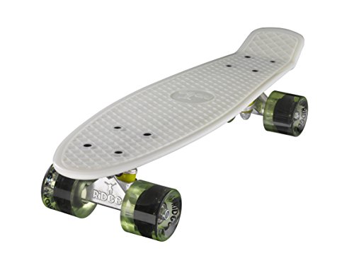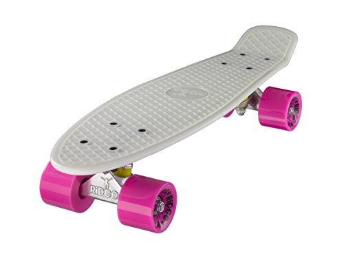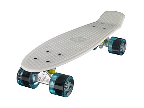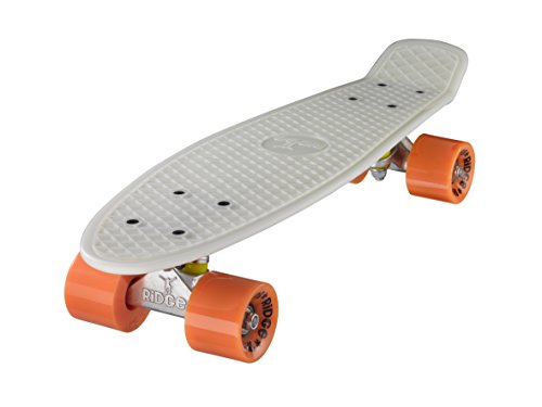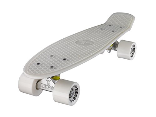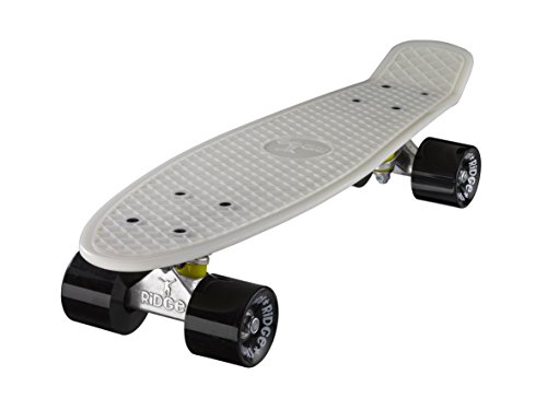 JETZT IN GLOW IN THE DARK VERFüGBAR!! PERFEKT FÜR WINTERTAGE! "Back to the roots" ist bei Ridge das Motto, denn der Ridge Mini Cruiser ist an die Cruiser Boards aus den alten Tagen angelehnt. Klar von den Vintage Plastik-boards der 60er und 70er Jahre inspiriert, aber jetzt mit modernem Set-up fertig montiert, der Ridge Mini Cruiser ist tatsächlich noch klein genug, im Schließfach zu verstauen. Aus GLOW IN THE DARK "Special Formula" Kunststoff gegossen und mit farbige Rollen versehen, macht der Ridge Cruiser optisch echt Eindruck und überzeugt auch beim Fahren durch die perfekte Mischung von Flex und Haltbarkeit, moderne Achsen und die weichen 78A PU Cruiserrollen mit jeder Menge Grip. Damit jeder genau den Cruiser findet, den er sucht, kommt der Ridge Mini Cruiser in fast 90 Farbvarianten daher. Coole Sache das! Deckspezifikationen: - Länge: 56 cm - Breite: 15 cm - Wheelbase: 29 cm - Konstruktion: Kunststoff (Ridge Plastik Formula) - Flex: Medium - Concave: ohne Setup: - Achsen: Ridge 3'' Achsen - Rollen: Ridge branded 59 mm supersoft 78A PU Wheels - Kugellager: ABEC 7 Bearings - Hardware: Kreuz-Montageset, keine Riser-pads - Griptape: keinsFeature