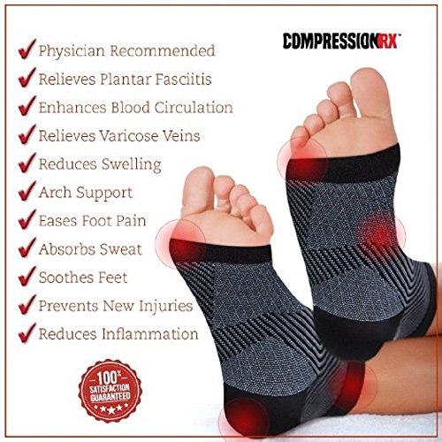 -. Feature : PROVIDES PLANTAR FASCIITIS PAIN RELIEF - Engineered compression foot sleeves feature compression on the bottom of the sleeves that helps to relieve plantar fasciitis pain by compressing the plantar fascia ligament. Its thin design allows it to be worn all day or at night to help relieve plantar fasciitis pain. Optimal support for muscle endurance and ultra-fast recovery. / LIGHTWEIGHT QUALITY MATERIAL - Professional grade material (nylon & lycra blend) - Designed for comfort and ultra-durability. It is not only lightweight and breathable, but also moisture wicking. The ankle support will stay dry even during the toughest workouts. Whether using the ankle support during a long run or while walking, the anti-odor features of the sleeve prevents odor, leaving feet feeling fresh. / TARGETED COMPRESSION TECHNOLOGY- Our foot compression sleeves provide support in the ankle area without restricting motion. It features targeted compression to support the ankle area which improves circulation, reduces inflammation, and promotes faster muscle recovery. / IDEAL FOR SPORTS & DAILY WEAR - Our ankle sleeves fit comfortably under your socks and won't restrict movement. Our high quality material is naturally soft and you will forget you even have them on. / SATISFACTION GUARANTEED - We are sure you'll be thrilled with our plantar fasciitis ankle brace. There's no reason not to give it a try.