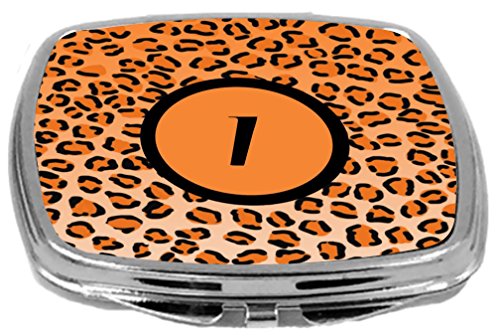 Rikki Knight Compact Mirror, Letter I Initial Orange Leopard Print