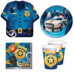 -. Feature : Police Party Standard Party Packs (For 16 Guests) / 16 Police Party Uniform Paper Plates, 16 Police Party Dessert Plates / 16 Police Party Birthday Napkins / 16 Police Party Cups / 1 Happy Birthday Sticker