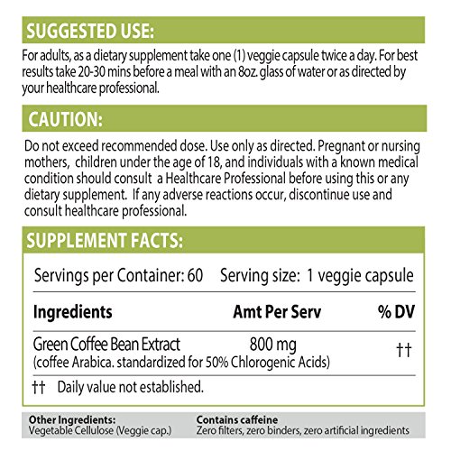 • Each capsules contains 800mg of pure Green Coffee Extract. No fillers.