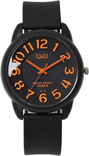 -. Title : [シチズン Q&Q]腕時計 10気圧防水 ウレタンバンド カジュアル ポップ 立体インデックス レディース メンズ ボーイズ ブラック オレンジ VR64-006