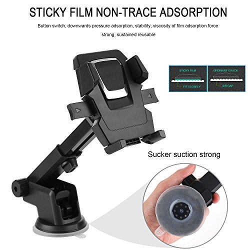 The stability of the mount on the dashboard relies both on the super suction cup with sticky gel pad and the specially designed structure to reduce the whole force moment.