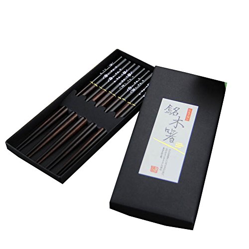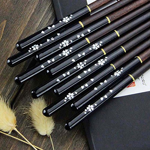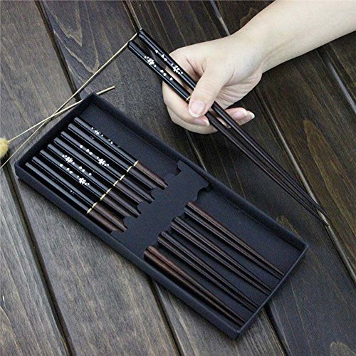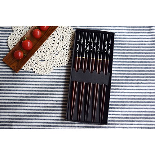 Aiernuo 5 Pairs Black Sakura Pattern Hardwood Reusable Sushi Family Gift Chopsticks Set