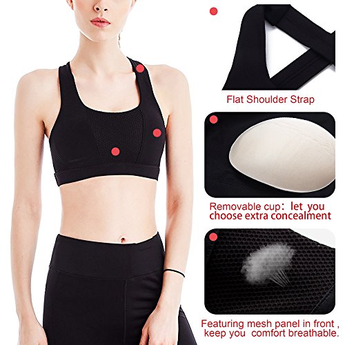 -. Feature : 87% Nylon, 13% Spandex. Sweat-wicking , fabric is four-way stretch, cool to the touch and fits like a second skin-this technical fabric offers support and smooth, low-friction. / Unique X-style cross back shoulder strap and 2 elastic wide bands not only effectively protect against shock, prevent the bra from shifting or slipping off, but also beautify the back curve, highlight the charming figure, increase the fashion sexy style. / Push up & Padded with removable pads for convenient adjustment, with a cotton-like meterial, soft and comfortable to wear. / Breathable Sports Bra: Quick-drying Champion Vapor technology helps keep you cool and dry. / Perfect bra support for high impact activities.Compression fit for snug support during light support workout like cycling, exercise, dancing, gym, yoga, jogging, training and so on.