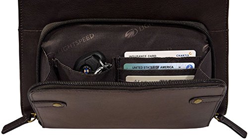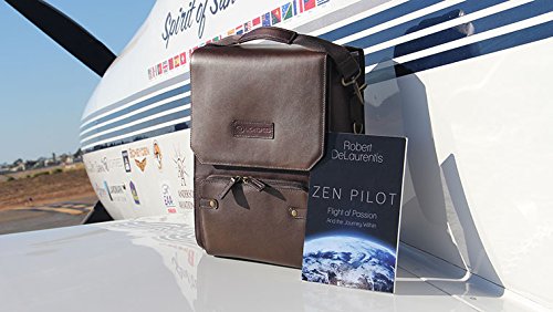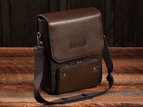 Handmade from full-grain, oiled South American cowhide in espresso brown with contrasting top grain cowhide pocket flaps in mocha brown and steel fittings finished for an antique brass look