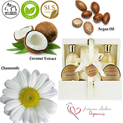 - SUPERIOR FORMULA .Joanne Arden Skin Care & Hair Care Gift Baskets are way beyond your typical Spa Gift Baksets, they are a Total Spa & Salon Hair & Body Care Kit! Our skin & hair loving ingredients include Shea Butter & Pure Moroccan Argan Oil! That’s why our 3-in-1 Shampoo, Body lotion, & Bath Bombs are so hydrating& nourishing, they make your skin & hair glow!