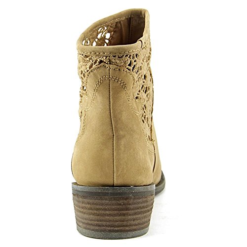 Product DescriptionThis snappy ankle boot is sure to pick up your spirits!Faux leather upper with cutout lace detailsPull-on styleLightly padded footbed1-1/2" heel height0